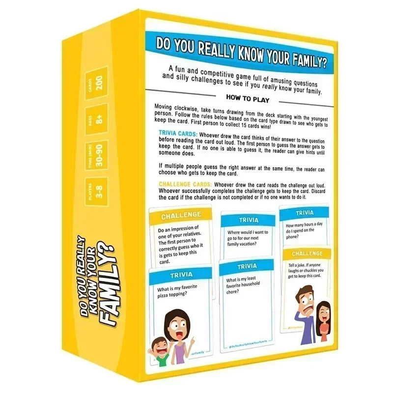 - "Do You Really Know Your Family?" is super easy to learn and play - a perfect game for families with kids 8 and up, teens and adults.